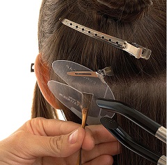 Второй способ наращивания волос, также достаточно распространенный – микрокапсульный. В качестве донорских прядей применяют натуральные локоны с нанесенными на них креариновыми капсулами, имеющими форму плоских пластинок крошечного размера. Кератин размягчают нагреванием при помощи специальных щипцов с двумя зажимами. Цена наращивания волос будет зависеть от количества и длины прядей.